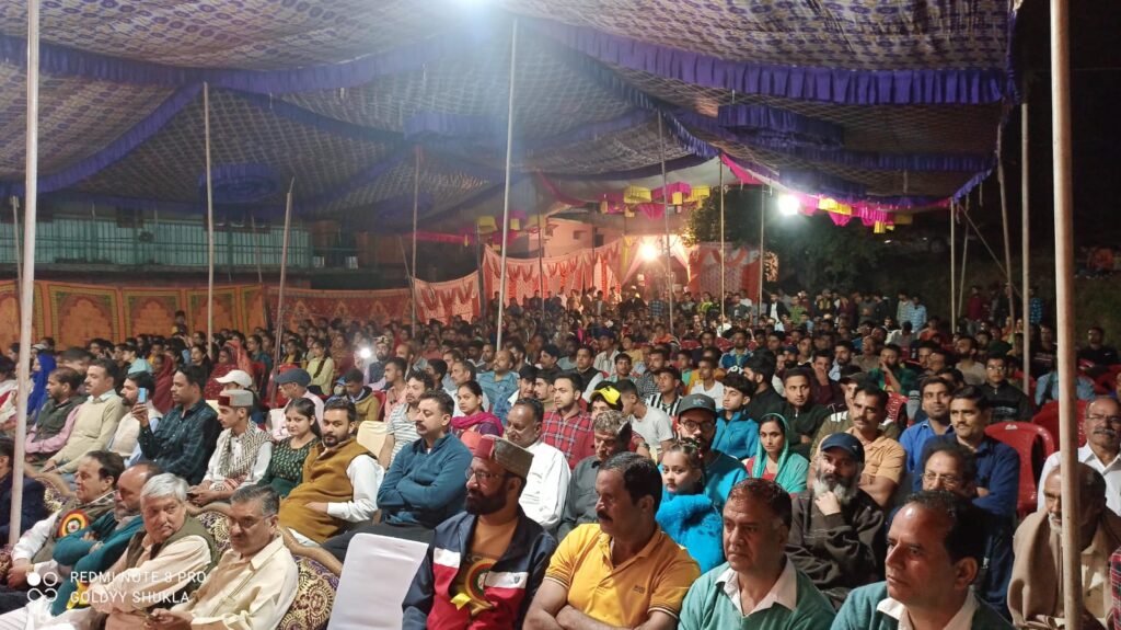 ब्यूरो,दैनिक हिमाचल न्यूज़:-(दाड़लाघाट) ग्राम पंचायत एवं दशहरा उत्सव समिति दाड़लाघाट द्वारा आयोजित रात्रि सांस्कृतिक संध्या में हिमाचली,पुराने गीतों व पंजाबी गानों का खूब तड़का लगा।कलाकारों ने खूब रंग जमाकर देर रात तक चली इस संध्या को यादगार पलों में तबदील कर दिया।सांस्कृतिक संध्या के मुख्यातिथि इकाई प्रमुख अंबुजा सीमेंट लिमिटेड दाड़लाघाट दीपक जसूजा रहे।जबकि विशेष अतिथि के तौर में एसीएफ के कार्यक्रम प्रबंधक भूपेंद्र गांधी ने शिरकत की।ग्राम पंचायत एवं दशहरा उत्सव समिति के सदस्यों ने मुख्यातिथि का स्वागत किया।अपने संबोधन में दीपक ने कहा कि मेले व सांस्कृतिक कार्यक्रम हमारी प्राचीन सभ्यता के घोतक है।ऐसे आयोजनों से लोगों में भाईचारा बढ़ता है।सांस्कृतिक संध्या में स्थानीय कलाकार हिमाचल की आवाज श्रुति शर्मा,मास्टर किशोर,सीमा शुक्ला व वॉयस ऑफ पंजाब गौरव कौंडल व एंकर गोविंद शर्मा ने देर रात तक दर्शकों का खूब मनोरंजन किया।सबसे पहले सीमा शुक्ला ने हिंदी व पहाड़ी गाने गाकर खूब धमाल मचाया और दर्शकों को झूमने पर मजबूर कर दिया।उन्होंने ओबे लालिये,कर लेनी पहाड़ री सैर हिंदी गाने व नाटी इत्यादि कई प्रस्तुतियों दी।इसके बाद किशोर भाटिया ने स्थानीय पहाड़ी गानों का बखूबी गायन किया।उन्होंने बाड़ूबाड़ा महाराज,मोती रे ओ मेरा खोया नथनी दा,तंबाखू ए री डाली,पते अली गे बरोटू व एक के बाद एक गीत प्रस्तुत करके पंडाल की दर्शक दीर्घा में मौजूद हजारों दर्शकों का मन मोह लिया।इसके बाद श्रुति शर्मा ने केसरिया तेरा इश्क़ है पिया,जुगनी जी,बीड़ी जो लाई जिगर आदि गाने गाकर दर्शकों को खूब नचाया।अंत में वाॅयस आप पंजाब गौरव कौंडल ने अपनी आवाज का जादू चलाकर,चल मेले नू चलिए,में तेनू समझावां की,लाके इक पेग बलिए,रोहड़ू जाना मेरी अमिये आदि पहाड़ी गाने गाकर पंडाल में बैठे सभी दर्शकों का मन मोह लिया।इस दौरान मेला कमेटी के सदस्यों ने उत्कृष्ट कार्य करने वालो में इंदर सिंह चौधरी,नरेंद्र सिंह चौधरी,करमचंद चौधरी,समाजसेवक मोहन सिंह ठाकुर को सम्मानित किया।इस अवसर ग्राम पंचायत दाड़लाघाट के प्रधान बंसी राम भाटिया,उपप्रधान हेमराज ठाकुर,मेला कमेटी के प्रधान वेद प्रकाश शुक्ला,उप प्रधान मोहन सिंह ठाकुर,पूर्व प्रधान सुरेंद्र शुक्ला,पूर्व उपप्रधान राजेश गुप्ता,कमल कौंडल,विकास शर्मा,नरेंद्र चौधरी,केशव वशिष्ट,पप्पू,इंद्र सिंह चौधरी,महेश्वर शुक्ला बंटू शुक्ला,पवन शर्मा,कर्ण शुक्ला,तनुज शुक्ला,महेन्द्र शर्मा,संजीव शर्मा,सत्यादेव शुक्ला सहित पंचायत के सभी सदस्य व अन्य गणमान्य लोग उपस्थित रहे।