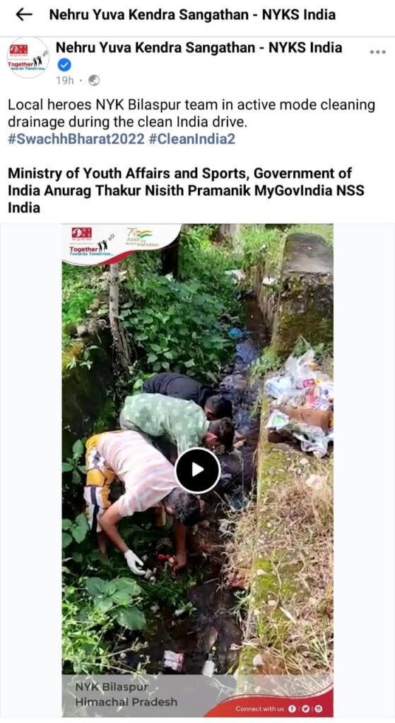 ब्यूरो, दैनिक हिमाचल न्यूज :-ग्राम पंचायत धार- टटोह, जिला बिलासपुर के अंतर्गत पड़ने वाले टटोह गांव के शिव शक्ति युवक मंडल कवाली टटोह की क्लीन इंडिया 2.0 के अंतर्गत सफाई अभियान की गतिविधियों को नेहरू युवा केंद्र संगठन इंडिया के फेसबुक, इंस्टाग्राम और ट्वीटर के राष्ट्रीय पेज पर जगह मिली है।