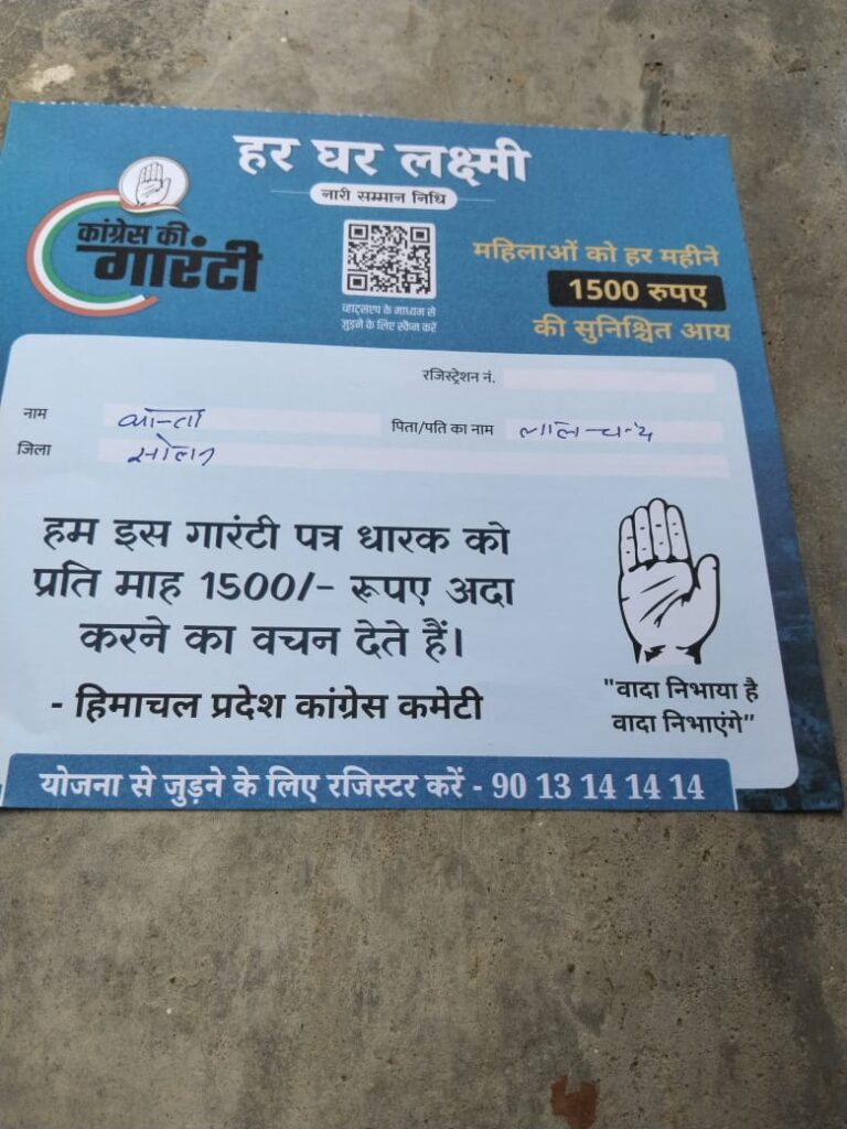 महिला गारंटी पत्र हिमाचल की स्वभमानी महिओं का अपमान
