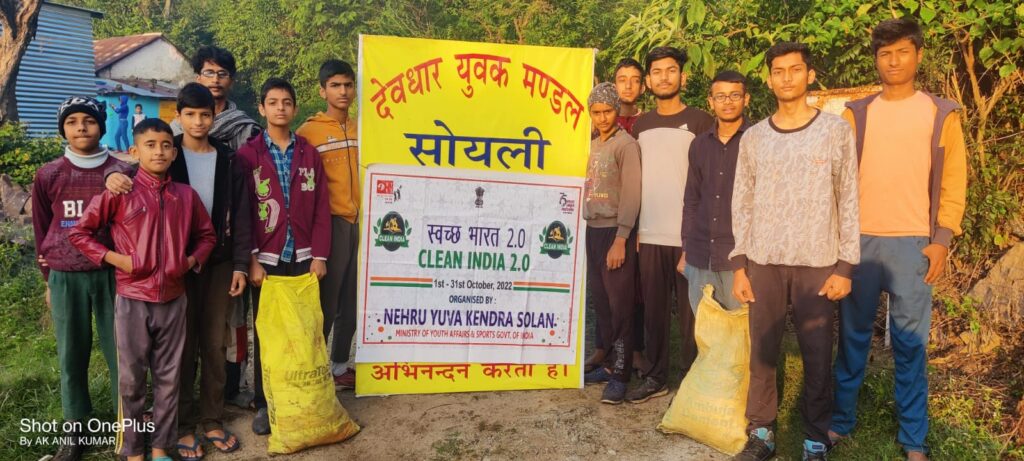 इसी तरह देवधार युवक मंडल सोयली के युवाओं ने भी नेहरू युवा केन्द्र सोलन के सौजन्य से ग्राम सोयली में क्लीन इंडिया 2.0 मिशन के तहत गांव के रास्तों व बावड़ियों की सफाई की और इधर -उधर बिखरे कचरे को इकट्ठा कर कूड़ेदान में डाला व ग्रामीणों को स्वच्छता के प्रति जागरूक भी किया। इस दौरान युवक मंडल के प्रधान भूपेंद्र,, अनिल कुमार, हरीश, मोहित सहित बहुत से युवा इस स्वच्छता अभियान में शरीक हुए।