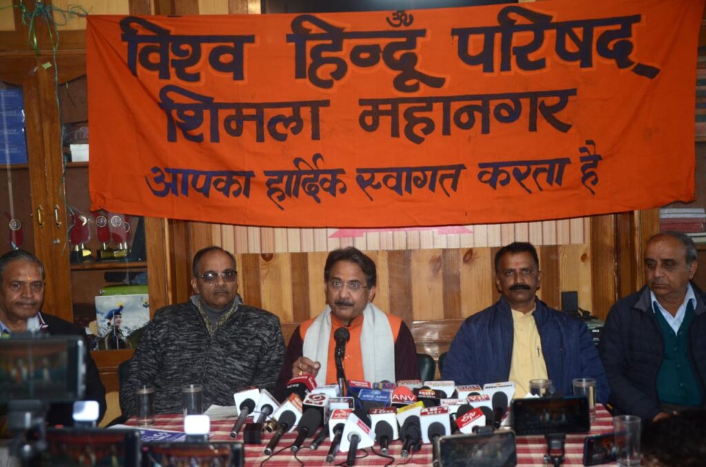 ब्यूरो, दैनिक हिमाचल न्यूज :- विश्व हिन्दू परिषद हिमाचल प्रांत मे आगामी 15 दिनों में डेढ़ लाख हिंदुओं को हित चिंतक अभियान के माध्यम से जोड़ने के लिए संपर्क करेगा । विहिप के केन्द्रीय सह-मन्त्री एवं अखिल भारतीय प्रचार प्रसार प्रमुख विजय शंकर तिवारी ने शिमला मे पत्रकार वार्ता मे बताया कि विश्व हिन्दू परिषद को कार्य करते हुए 58 वर्ष हो गए, जिसमें कई आंदोलन, अभियान तथा सृजनात्मक कार्य हाथ में लिए ।