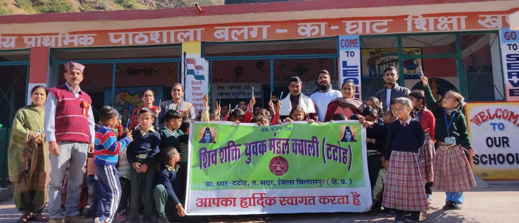 ‘ब्यूरो,दैनिक हिमाचल न्यूज:- संविधान दिवस’ के अवसर पर आज शिव शक्ति युवक मंडल कवाली टटोह के सदस्यों ने सदर उपमंडल, बिलासपुर के अंतर्गत पड़ने वाले बलग -का- घाट स्कूल में जाकर बच्चों के साथ संविधान दिवस मनाया। स्कूल प्रशासन और स्कूल प्रबंधन समिति ने युवक मंडल के सदस्यों का स्वागत किया और स्कूल में इस कार्यक्रम को आयोजित करने पर खुशी जताई।