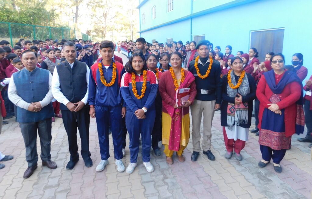 राज्यस्तरीय खेलो में गोल्ड जीतकर विद्यालय पहुंची गुंजन व दिशिता का विद्यालय प्रसासन द्वारा किया गया भव्य स्वागत