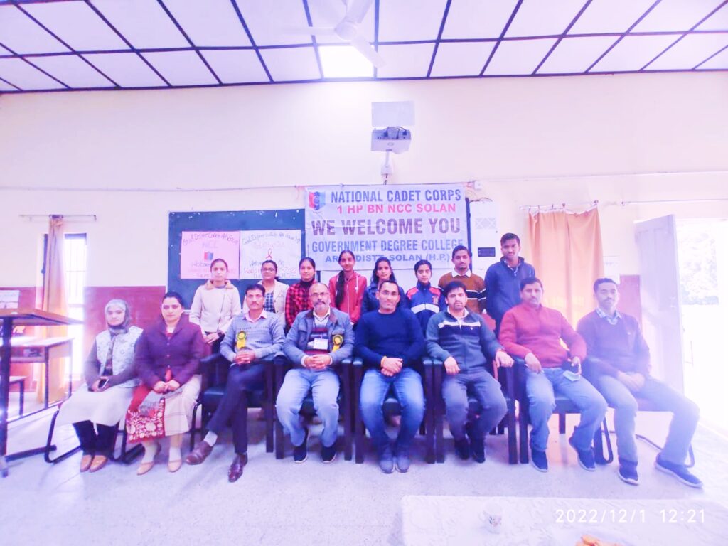 ब्यूरो// दैनिक हिमाचल न्यूज :- राजकीय महाविद्यालय अर्की में एड्स दिवस के उपलक्ष्य पर रेड रिबन क्लब एवं एनसीसी शाखा द्वारा एड्स जागरूकता दिवस मनाया गया। जिसमे पोस्टर मेकिंग, स्लोगन राइटिंग ओर भाषण प्रतियोगिता का आयोजन किया गया।