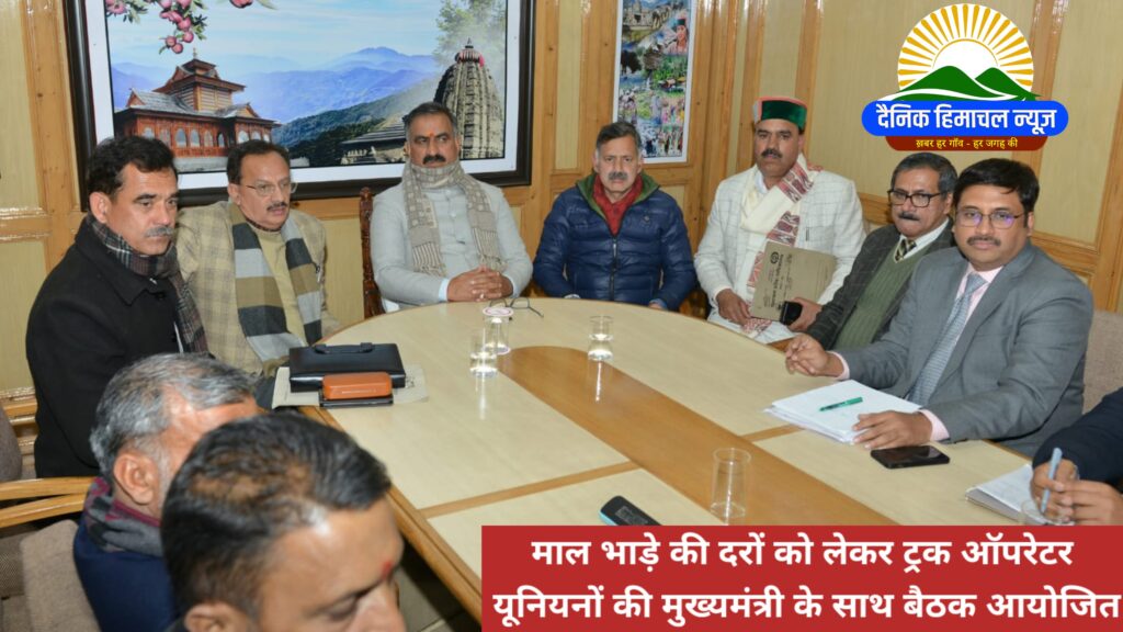 ब्यूरो, दैनिक हिमाचल न्यूज :- माल भाड़े की दरों को लेकर सीमेंट कम्पनी और ट्रक ऑपरेटरों के बीच जारी विवाद को दूर करने के लिए मुख्यमंत्री ठाकुर सुखविंदर सिंह सुक्खू की अध्यक्षता में आज विभिन्न ट्रक ऑपरेटर यूनियनों के प्रतिनिधियों के साथ आज देर शाम बैठक आयोजित की गई। बैठक में बिलासपुर जिले से सम्बन्धित विधायको ने भी भाग लिया।