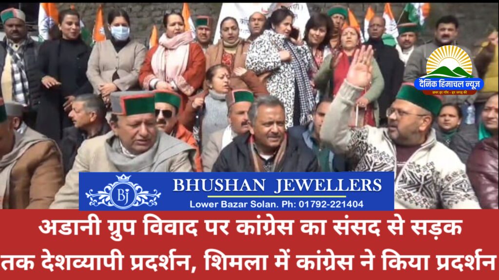 शिमला, विनोद//दैनिक हिमाचल न्यूज :- अडानी ग्रुप विवाद पर कांग्रेस का संसद से सड़क तक देशव्यापी प्रदर्शन, शिमला में कांग्रेस ने किया प्रदर्शन।उद्योगपति गौतम अडानी पर अमरीकी रिसर्च फर्म द्वारा लगाए गए वित्तीय धोखाधड़ी के आरोप पर सियासी पारा देश भर में हाई है। आज कांग्रेस इस मुद्दे पर पूरे देश में विरोध-प्रदर्शन कर रही है।