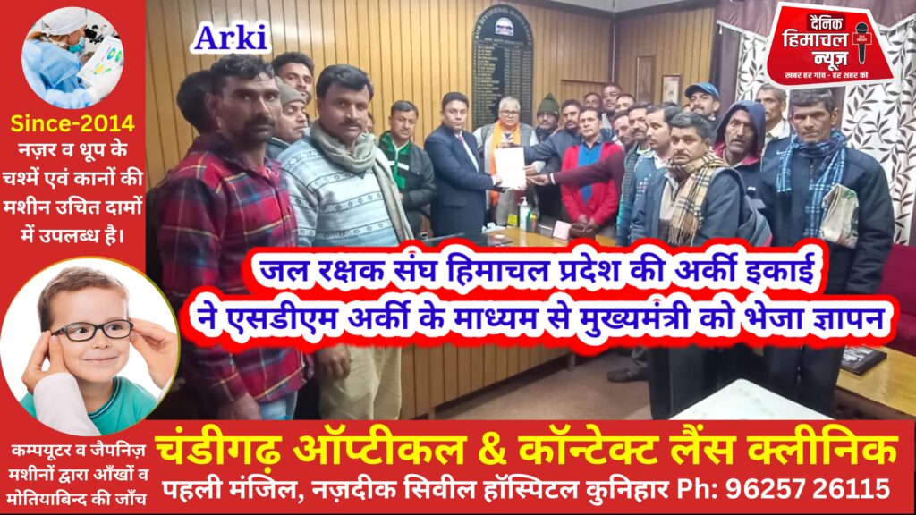 ब्यूरो, दैनिक हिमाचल न्यूज:- जलरक्षक संघ हिमाचल प्रदेश अर्की इकाई का प्रतिनिधिमंडल एसडीएम अर्की केशव राम कोली से उनके कार्यालय में मिला । इस दौरान उन्होंने एसडीएम के माध्यम से प्रदेश के मुख्यमंत्री को अपनी समस्याओं को लेकर एक ज्ञापन सौंपा ।