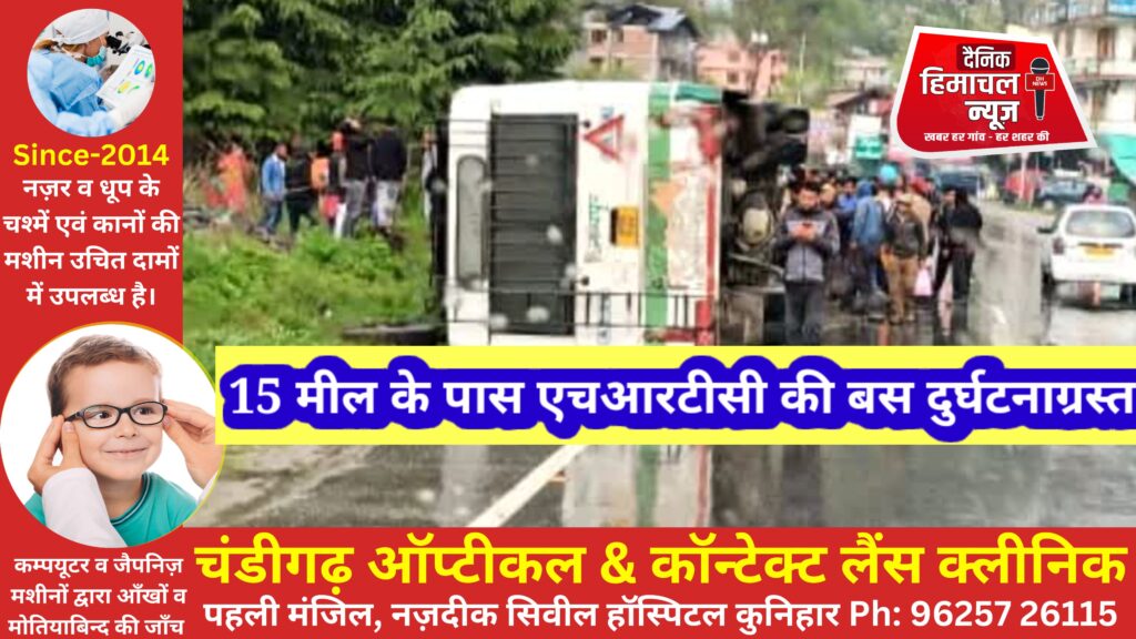 ब्यूरो, दैनिक हिमाचल न्यज:- प्रदेश के कुल्लू-मनाली हाईवे पर 15 मील के पास एचआरटीसी की यात्रियों से भरी बस अनियंत्रित होकर पलट गई।
