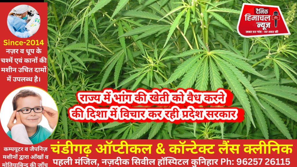 ब्यूरो, दैनिक हिमाचल न्यूज:- मुख्यमंत्री ठाकुर सुखविंदर सिंह सुक्खु ने कहा कि प्रदेश सरकार राज्य में भांग की खेती को वैध बनाने की दिशा में विचार कर रही है, जिससे राज्य के लिए राजस्व अर्जित होगा। वहीं यह औषधीय और औद्योगिक क्षेत्र के लिए कारगार साबित होगी। भांग में कई औषधीय गुण पाए जाते है। इसके औषणीय गुणों के इस्तेमाल से कैंसर, मधुमेह, उच्च रक्तचाप, अवसाद आदि से ग्रसित मरीजों को काफी राहत मिलती है।