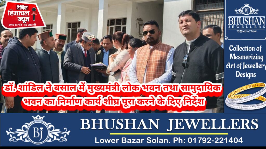 ब्यूरो, दैनिक हिमाचल न्यूज:- स्वास्थ्य एवं परिवार कल्याण, सामाजिक न्याय एवं अधिकारिता तथा श्रम एवं रोज़गार मन्त्री डॉ. कर्नल धनीराम शांडिल ने शनिवार को सोलन विधानसभा क्षेत्र की ग्राम पंचायत बसाल में निर्माणाधीन मुख्यमंत्री लोक भवन तथा सामुदायिक भवन का निरीक्षण किया और इनके शीघ्र निर्माण के सम्बन्ध में उचित दिशा-निर्देश जारी किए।