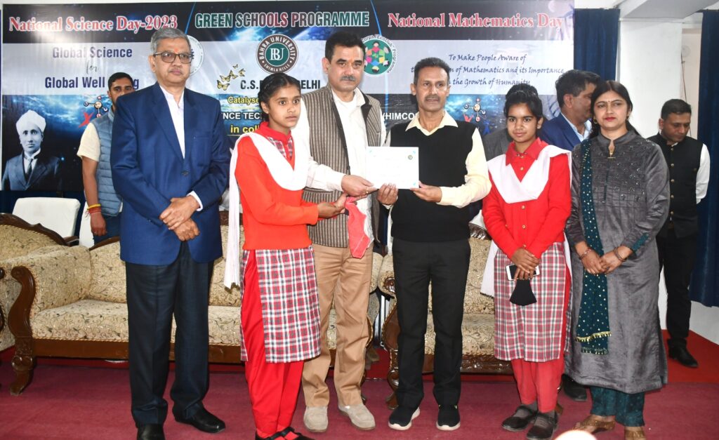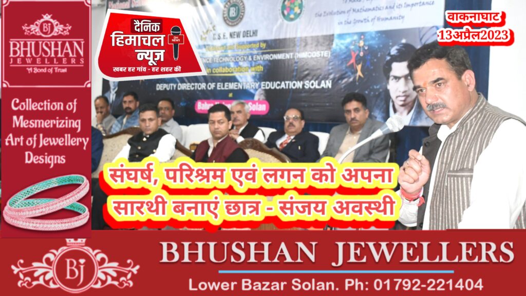 ब्यूरो, दैनिक हिमाचल न्यूज:- प्रारम्भिक शिक्षा विभाग सोलन द्वारा आज सोलन ज़िला के वाकनाघाट में स्थित बाहरा विश्वविद्यालय में ज़िला स्तरीय ग्रीन स्कूल कार्यक्रम, राष्ट्रीय विज्ञान दिवस और राष्ट्रीय गणित दिवस के तहत सम्मान समारोह का आयोजन किया गया। आयोजन में मुख्य संसदीय सचिव (लोक निर्माण, स्वास्थ्य एवं परिवार कल्याण तथा सूचना एवं जन सम्पर्क विभाग) संजय अवस्थी ने बतौर मुख्यातिथि शिरकत की।