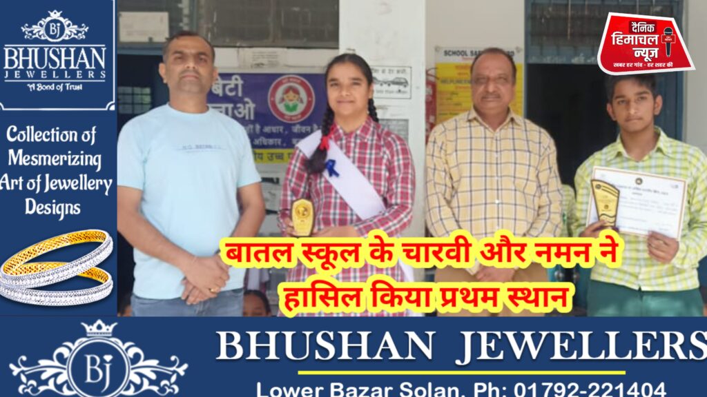 ब्यूरो, दैनिक हिमाचल न्यूज:- राजकीय उच्च विद्यालय बातल के नमन शर्मा और चारवी शर्मा, ने ” रिजर्व बैंक और यूको बैंक के सौजन्य से आयोजित खंड स्तरीय वितीय साक्षरता प्रतियोगिता में भाग लिया , जिसमे राजकीय उच्च विद्यालय के इन बच्चो का प्रदर्शन सर्वश्रेष्ठ रहा और प्रथम स्थान प्राप्त किया तथा पाँच हजार रुपए की राशि और प्रशस्ति पत्र प्रदान किया गया।