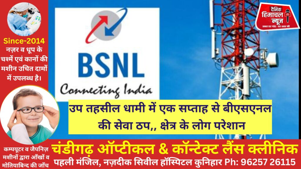 उप तहसील धामी में एक सप्ताह से बीएसएनल की सेवा ठप,, क्षेत्र के लोग परेशान