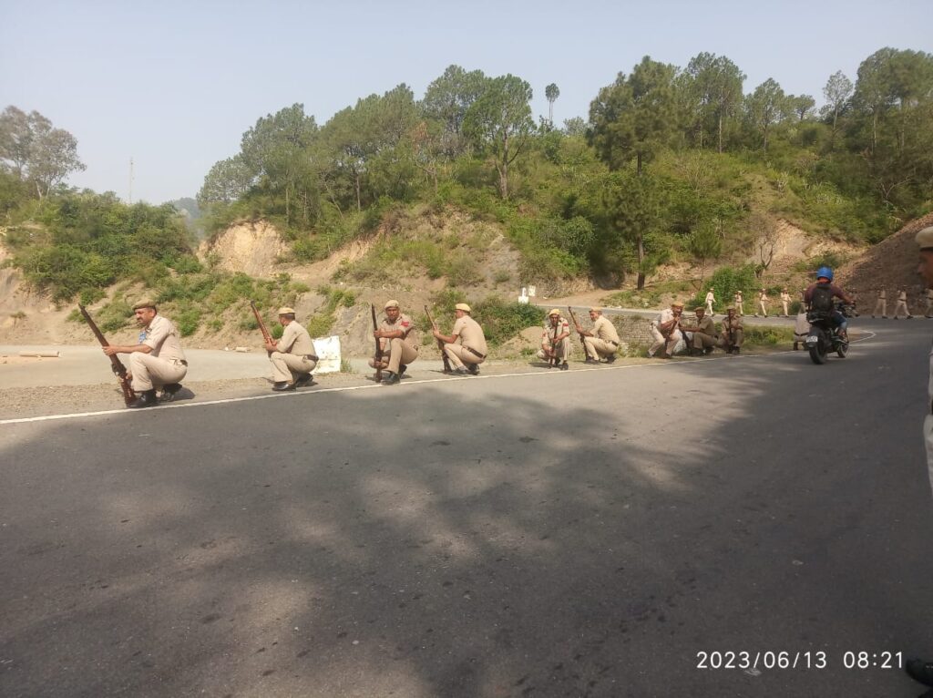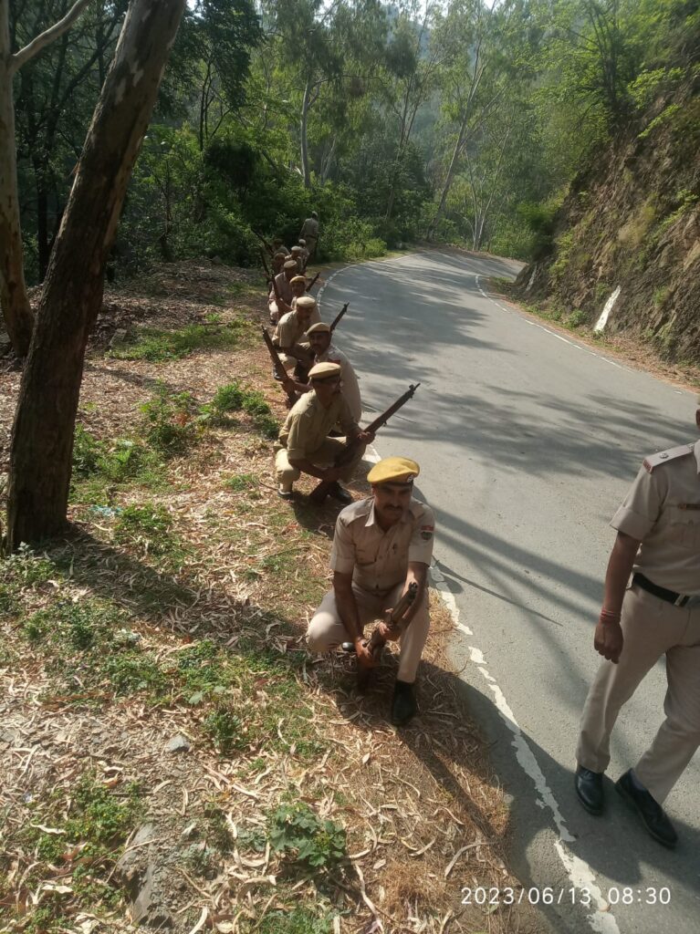 मंगलवार को जवानों ने हथियारों के साथ ट्रेनिंग सेंटर से देवधार मन्दिर दोहरी दीवार तक रूट मार्च किया। इस दौरान जवानों को फील्ड क्राफ्ट, एम्बुश व पेट्रोलिंग कार्य की बारीकियों का अभ्यास करवाया गया।बीटीसी इंचार्ज योगेश्वर गौतम ने जानकारी देते हुए बताया कि 25 मई को शुरू हुए इस दोहराई शिविर का समापन 15 जून को हो जाएगा।उन्होंने बताया कि ट्रेनिंग सेंटर में प्रशिक्षक प्लाटून कमांडर सुंदर लाल, बलवंत, राधेश्याम,विनोद कुमार, हवलदार मेजर यशपाल, हवलदार महेंद्र वर्मा आदि द्वारा जवानों को बटालियन द्वारा निर्धारित स्लेबस के अनुसार फील्ड कार्फ्ट, प्राथमिक चिकित्सा,रेस्क्यू ,फायर फाईटिंग, डिजास्टर मैनजमेंट, पुलिस क्रियात्मक कार्यवाही, सेरेमोनियल ड्रिल, वाहन एक्ट, भीड़ नियंत्रण हथियार प्रशिक्षण, प्रहरी कर्तव्य, लाठी चार्ज,मैप रीडिंग आदि विभिन्न विषयों की सिखलाई प्रदान की गयी। बीटीसी इंचार्ज योगेश्वर गौतम ने बताया कि 8 जून को आयोजित हुई मैगा मोक ड्रिल में प्रशिक्षण केंद्र से अर्की के लिए 25 जवान और सोलन के लिए 10 जवान रेस्क्यू कार्य के लिए गए थे। वहां पर भी जवानों के प्रदर्शन की खूब तारीफ हुई।
