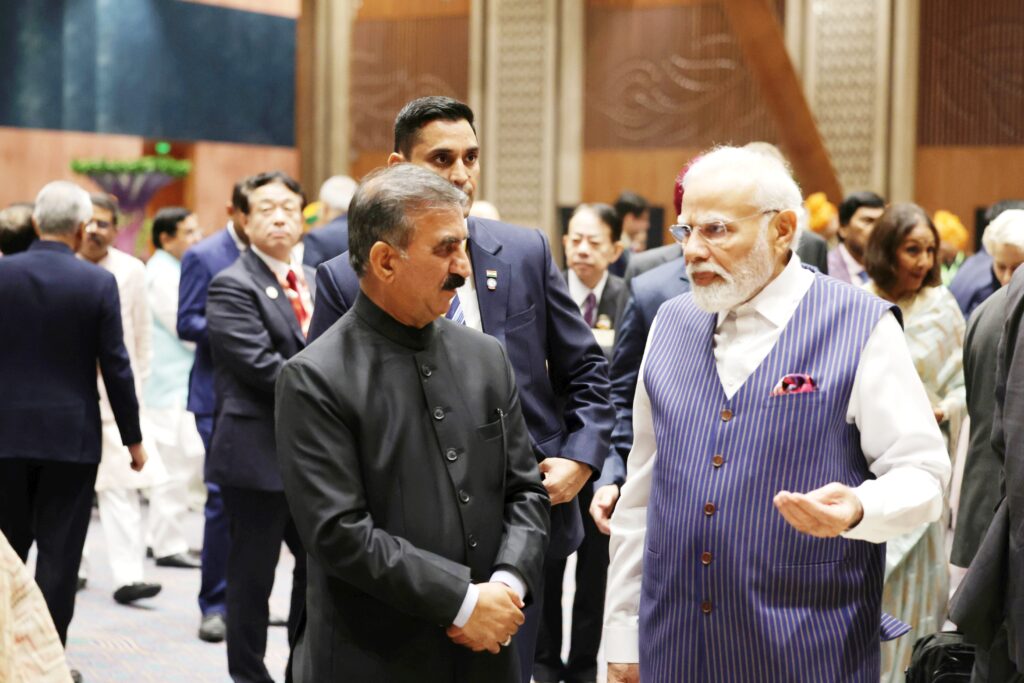 ब्यूरो, दैनिक हिमाचल न्यूज:- मुख्यमंत्री ठाकुर सुखविंदर सिंह सुक्खू ने शनिवार को नई दिल्ली के प्रगति मैदान स्थित भारत मंडपम में राष्ट्रपति द्रौपदी मुर्मु द्वारा जी-20 शिखर सम्मेलन के अवसर पर आयोजित रात्रि भोज में भाग लिया। इस अवसर पर मुख्यमंत्री ने प्रधानमंत्री नरेन्द्र मोदी से भी मुलाकात की और उनके समक्ष प्रदेश हित से जुड़े मुद्दों पर चर्चा की।