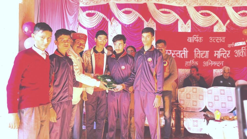 ब्यूरो,दैनिक हिमाचल न्यूज:- उपमण्डल मुख्यालय स्थित सरस्वती विद्या मंदिर उच्च विद्यालय अर्की में वार्षिक पुरस्कार वितरण समारोह हर्षोल्लास के साथ मनाया गया। कार्यक्रम में समाजसेवी व नगर के प्रमुख व्यवसायी सोनू सोनी बतौर मुख्य अतिथि उपस्थित हुए। इस कार्यक्रम का आयोजन विद्यालय सरंक्षक एवं हिमाचल शिक्षा समिति के जिला उपाध्यक्ष रामचंद्र शास्त्री के मार्गदर्शन में किया गया। समारोह में विद्यालय की मातृ भारती संस्था, विद्यालय प्रबंधन समिति और अभिभावकों ने सक्रिय सहयोग दिया।