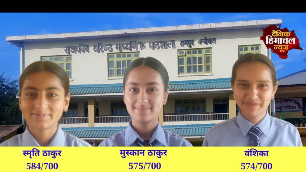 ब्यूरो, दैनिक हिमाचल न्यूज- शिमला जिला की राजकीय वरिष्ठ माध्यमिक पाठशाला रामपुर क्योंथल की छात्राओं ने दसवीं के परीक्षा परिणाम में उत्कृष्ट प्रदर्शन कर विद्यालय और क्षेत्र का नाम रोशन किया।