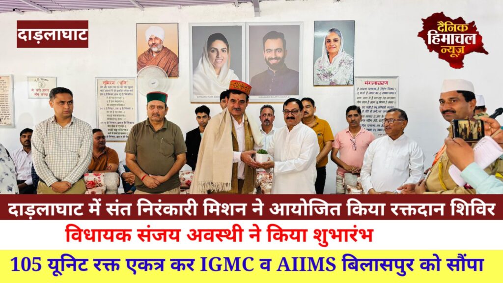 दाड़लाघाट में संत निरंकारी मिशन ने आयोजित किया रक्तदान शिविर, विधायक संजय अवस्थी ने किया शुभारंभ, 105 यूनिट रक्त एकत्र कर IGMC व AIIMS बिलासपुर को सौंपा