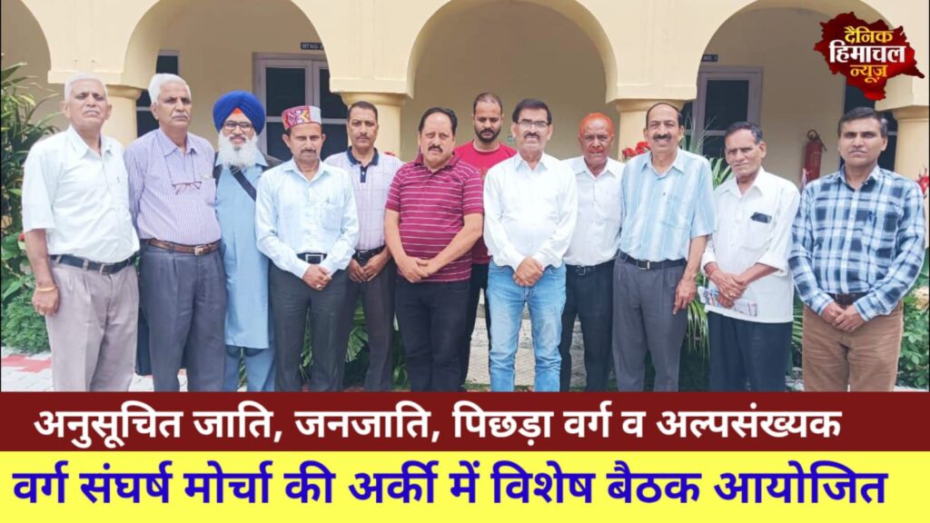 ब्यूरो, दैनिक हिमाचल न्यूज- अनुसूचित जाति, अनुसूचित जनजाति, अन्य पिछड़ा वर्ग और अल्पसंख्यक वर्ग संघर्ष मोर्चा अर्की की विशेष बैठक लोक निर्माण विभाग विश्राम गृह अर्की में आयोजित हुई। बैठक की अध्यक्षता मंडल अध्यक्ष गंगा राम ने की