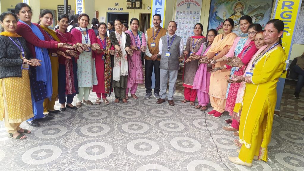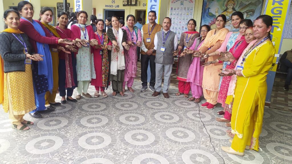 राजकीय आदर्श वरिष्ठ माध्यमिक विद्यालय धुंदन में करवाचौथ पर्व पर विशेष कार्यक्रम व मेहंदी प्रतियोगिता का आयोजन