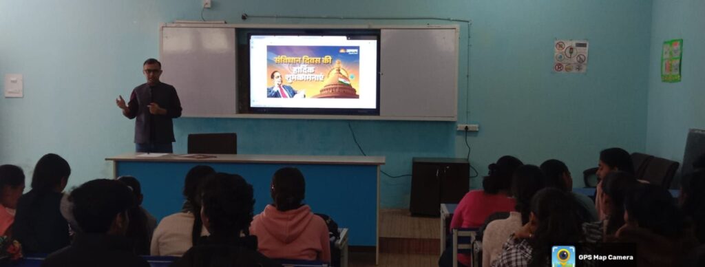 अपने संबोधन में प्राचार्या सुनीता शर्मा ने कहा कि संविधान दिवस का उद्देश्य भारतीय नागरिकों में संवैधानिक मूल्यों के प्रति जागरूकता और सम्मान की भावना को बढ़ावा देना है। उन्होंने कहा कि 26 नवंबर भारतीय इतिहास का महत्वपूर्ण दिन है, क्योंकि इसी दिन वर्ष 1949 में संविधान सभा ने भारतीय संविधान के मसौदे को औपचारिक रूप से स्वीकार किया था।