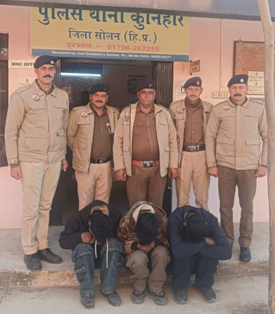 ब्यूरो,दैनिक हिमाचल न्यूज– पुलिस थाना कुनिहार क्षेत्र के अंतर्गत बिजली विभाग के जेई सब स्टेशन से एलुमिनियम कंडक्टर चोरी के मामले में पुलिस ने त्वरित कार्रवाई करते हुए तीन आरोपियों को गिरफ्तार किया है। इस संबंध में FIR नंबर 06/2026 दिनांक 20 जनवरी 2026 को धारा 331(4), 305, 3(5) बीएनएस के तहत मामला दर्ज किया गया है।