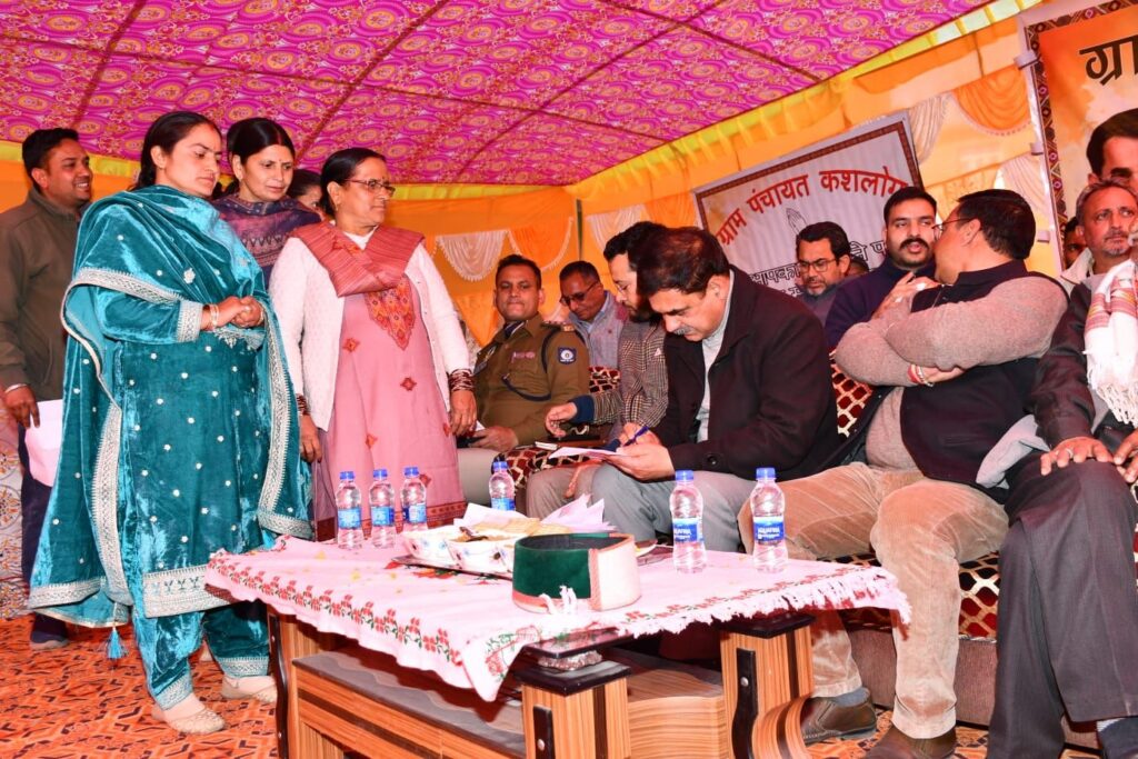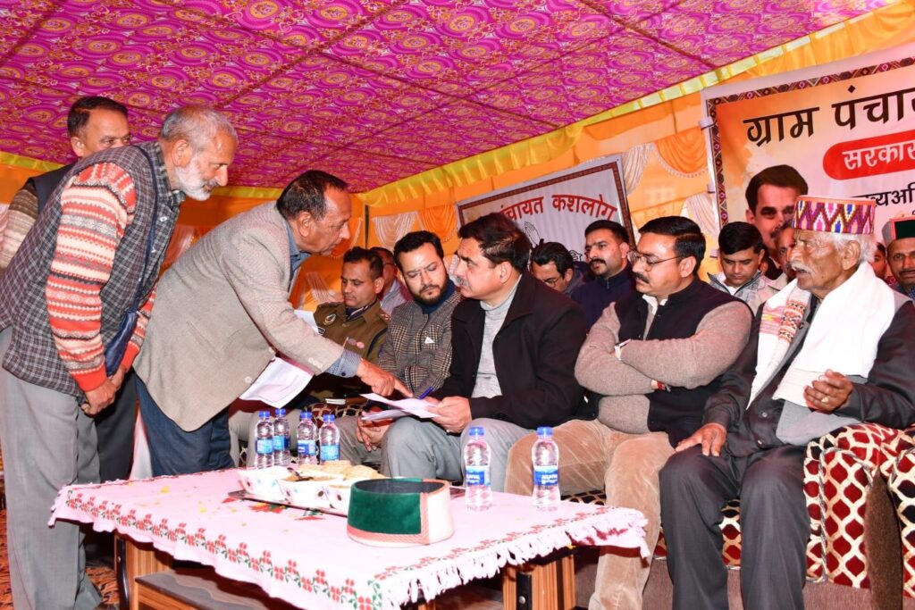 ब्यूरो, दैनिक हिमाचल न्यूज- अर्की विधानसभा क्षेत्र की ग्राम पंचायत कशलोग में ‘सरकार गांव के द्वार’ कार्यक्रम का आयोजन किया गया, जिसमें स्थानीय लोगों की समस्याएं सुनी गईं तथा विभिन्न मांगों पर मौके पर ही चर्चा की गई। कार्यक्रम में बड़ी संख्या में पंचायत प्रतिनिधि, विभागीय अधिकारी और ग्रामीण उपस्थित रहे।