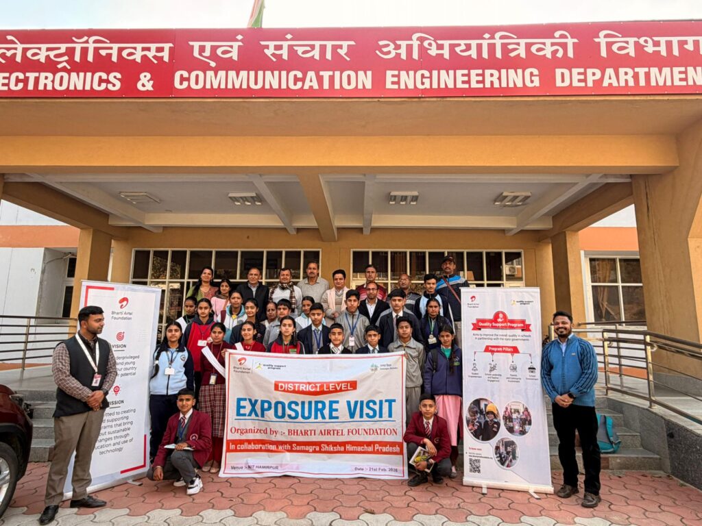 ब्यूरो, दैनिक हिमाचल न्यूज- भारती एयरटेल फाउंडेशन के सहयोग से संचालित क्वालिटी सपोर्ट प्रोग्राम तथा समग्र शिक्षा अभियान के अंतर्गत चयनित 11 विद्यालयों के विद्यार्थियों एवं शिक्षकों के लिए राष्ट्रीय प्रौद्योगिकी संस्थान हमीरपुर में शैक्षणिक भ्रमण आयोजित किया गया। कार्यक्रम का उद्देश्य विद्यार्थियों और शिक्षकों को तकनीकी नवाचार, सूचना प्रौद्योगिकी क्षेत्र की नवीनतम प्रगति तथा उच्च शिक्षा के अवसरों से अवगत कराना था।