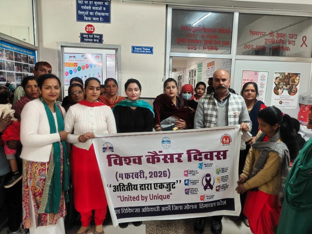 इस अवसर पर सिविल अस्पताल अर्की, जिला सोलन के एचआईवी काउंसलिंग एवं टेस्टिंग सेवाओं के काउंसलर विजय कुमार शांडील ने उपस्थित महिलाओं और पुरुषों को कैंसर के प्रति जागरूक किया। उन्होंने बताया कि कैंसर एक गंभीर बीमारी है, लेकिन समय पर पहचान होने पर इसका उपचार संभव है। उन्होंने स्तन कैंसर, सर्वाइकल कैंसर, मुख कैंसर और फेफड़ों के कैंसर जैसे सामान्य प्रकारों के लक्षणों की जानकारी देते हुए कहा कि लगातार खांसी, असामान्य गांठ, अनियमित रक्तस्राव, अचानक वजन कम होना तथा लंबे समय तक न भरने वाले घाव जैसे संकेतों को नजरअंदाज नहीं करना चाहिए।