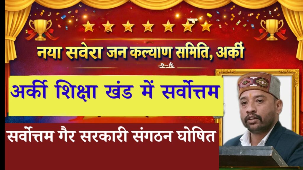 ब्यूरो, दैनिक हिमाचल न्यूज: नया सवेरा जन कल्याण समिति अर्की को शिक्षा खंड अर्की में सर्वोत्तम गैर सरकारी संगठन (एनजीओ) घोषित किया गया है। समिति को 13 मार्च 2026 को सोलन में आयोजित जिला स्तरीय सम्मान समारोह में सम्मानित किया जाएगा।