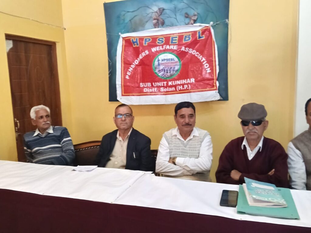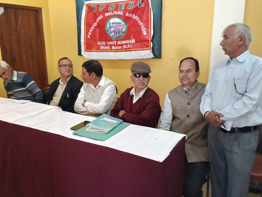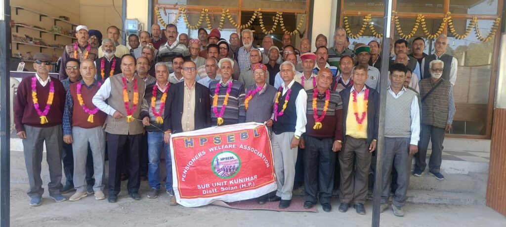 ब्यूरो, दैनिक हिमाचल न्यूज- हि. प्र. राज्य इलेक्ट्रिसिटी बोर्ड लिमिटेड पेंशनर्स वेलफेयर एसोसिएशन की कुनिहार उप इकाई की मासिक बैठक स्थानीय होटल में आयोजित की गई। बैठक की अध्यक्षता प्रधान इंजीनियर रतन तंवर ने की। यह बैठक इसलिए विशेष रही क्योंकि इस अवसर पर उप इकाई के द्विवार्षिक चुनाव भी संपन्न करवाए गए।