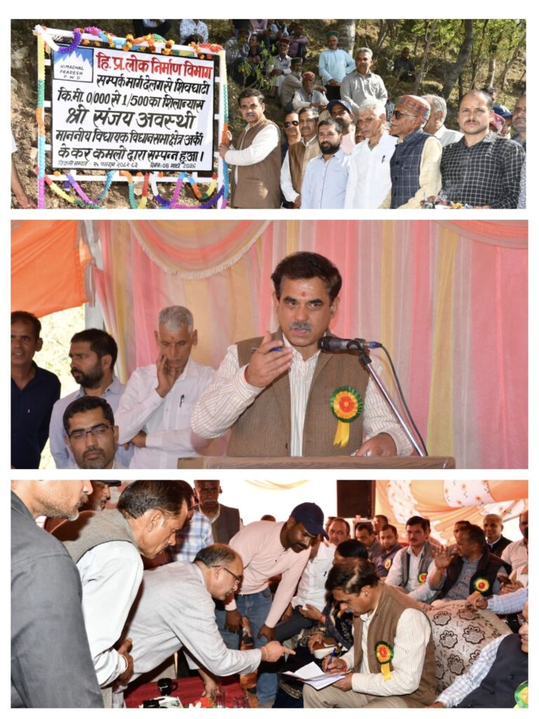 ब्यूरो,दैनिक हिमाचल न्यूज- अर्की विधानसभा क्षेत्र की ग्राम पंचायत सानण में देलग से शिवघाटी तक बनने वाले संपर्क मार्ग की आधारशिला रविवार को विधायक संजय अवस्थी ने रखी। लगभग 22 लाख रुपये की लागत से बनने वाले इस मार्ग से क्षेत्र के लोगों को बेहतर आवागमन सुविधा मिलेगी। इस अवसर पर विधायक ने उपस्थित महिलाओं को अंतरराष्ट्रीय महिला दिवस की शुभकामनाएं भी दीं।