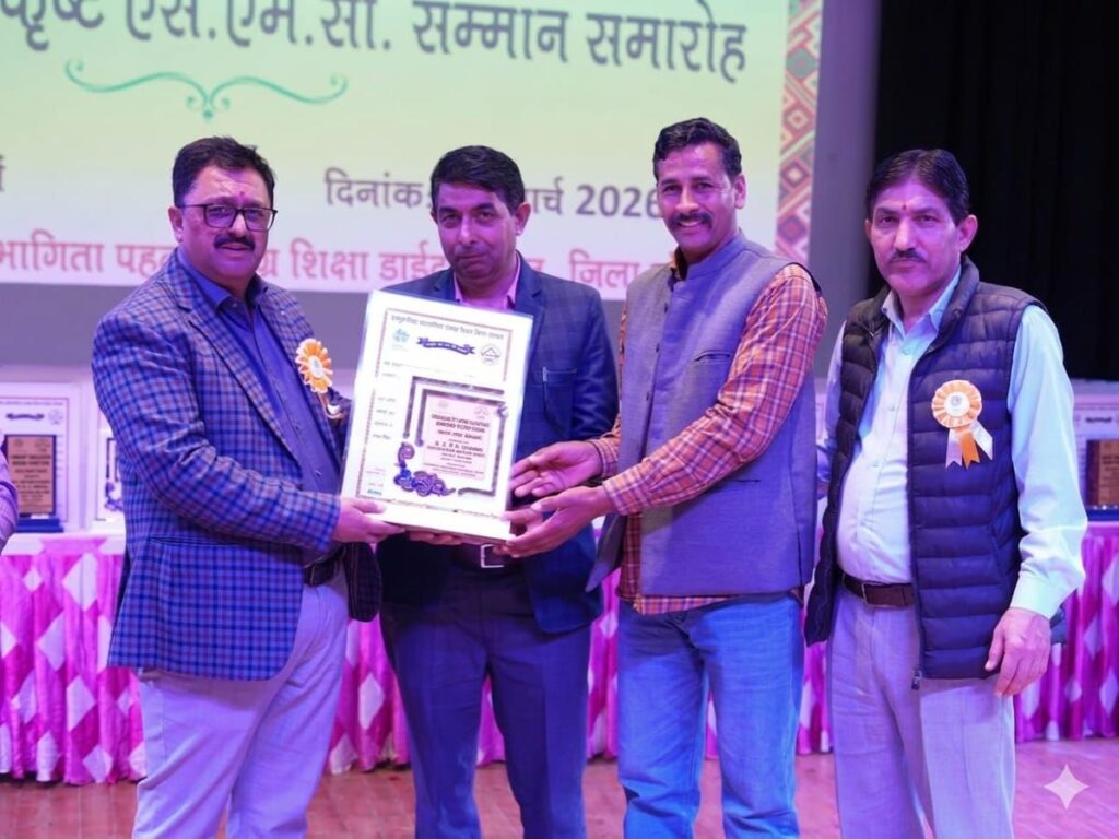 विद्यालय के विकास, शैक्षिक वातावरण को सुदृढ़ बनाने तथा विद्यार्थियों के हित में किए गए उल्लेखनीय कार्यों को ध्यान में रखते हुए विद्यालय प्रबंधन समिति को यह सम्मान प्रदान किया गया। यह सम्मान पत्र 13 मार्च 2026 को सोलन में आयोजित कार्यक्रम के दौरान दिया गया।