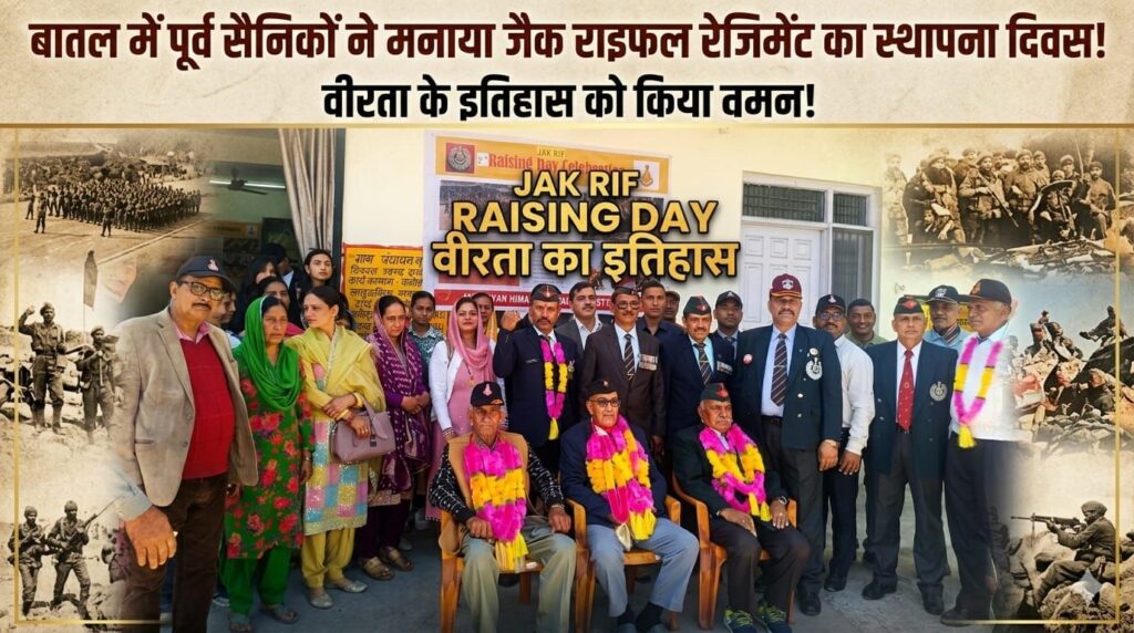 ब्यूरो,दैनिक हिमाचल न्यूज- उपमंडल की ग्राम पंचायत बातल स्थित सामुदायिक सैनिक भवन में पूर्व सैनिकों द्वारा जैक राइफल रेजिमेंट का स्थापना दिवस हर्षोल्लास और गरिमा के साथ मनाया गया। इस अवसर पर ऑनरेरी कैप्टन दिलाराम ने मुख्यातिथि के रूप में शिरकत की, जबकि हवलदार दयाराम और हवलदार लाल चंद विशेष अतिथि के रूप में उपस्थित रहे।