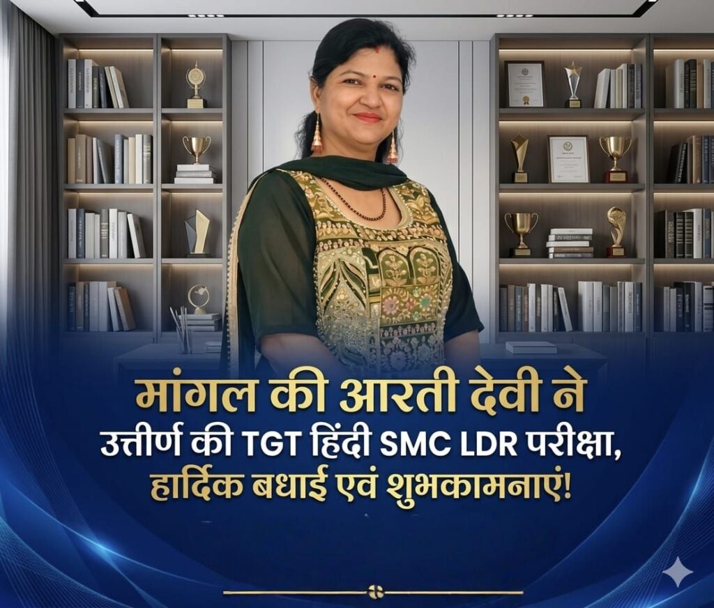 आरती देवी वर्तमान में मांगल में टीजीटी हिंदी के पद पर सेवाएं दे रही हैं। उन्होंने पारिवारिक जिम्मेदारियों के साथ अपनी पढ़ाई जारी रखते हुए यह सफलता प्राप्त की है, जिसे उनकी मेहनत और निरंतर प्रयास का परिणाम माना जा रहा है।