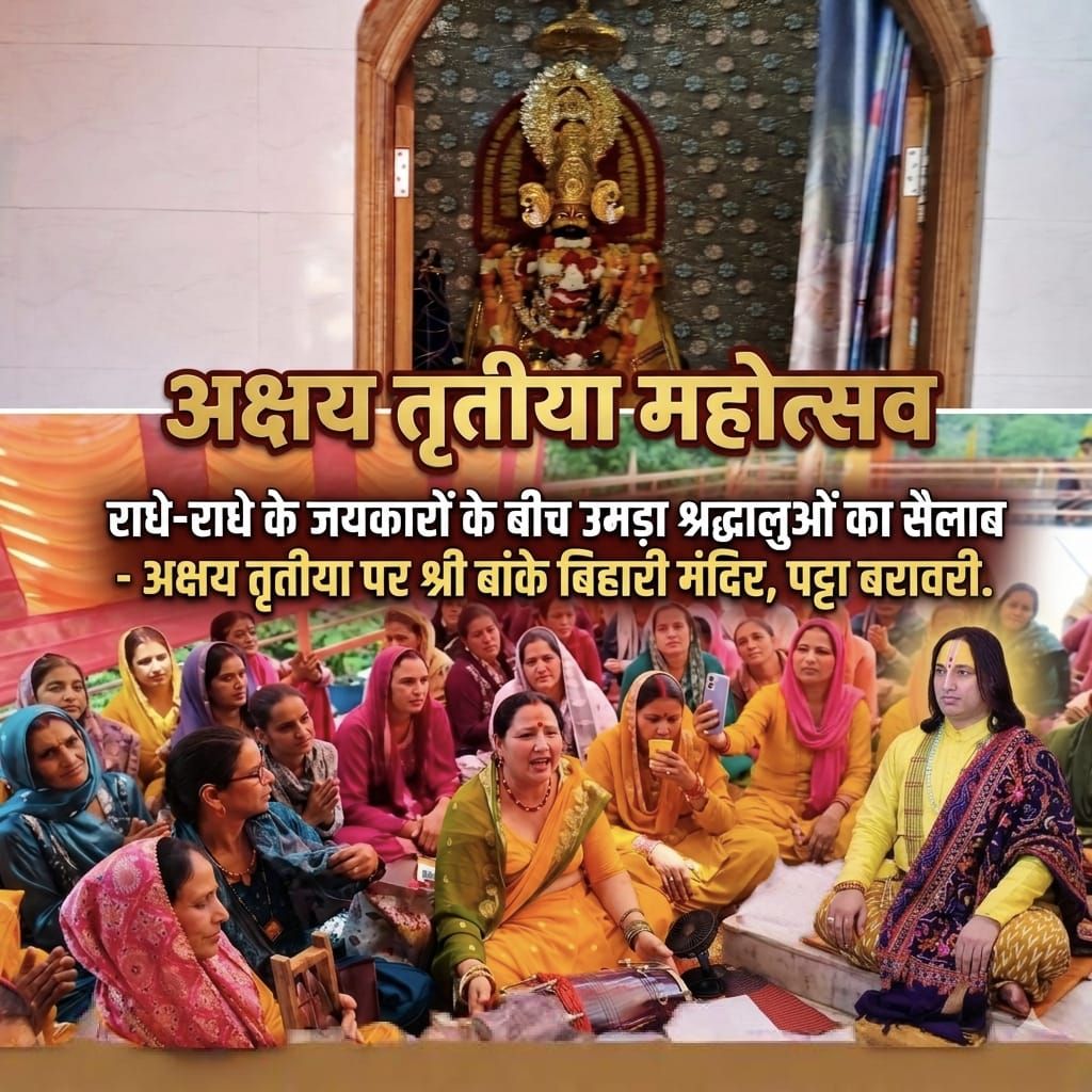 ब्यूरो,दैनिक हिमाचल न्यूज- अक्षय तृतीया के पावन अवसर पर विकास खंड सोलन की पट्टा बरावरी पंचायत स्थित श्री बांके बिहारी मंदिर परिसर भक्ति, श्रद्धा और आध्यात्मिक ऊर्जा से सराबोर रहा। मंदिर के प्रथम स्थापना महोत्सव के उपलक्ष्य में आयोजित भव्य धार्मिक कार्यक्रम ने पूरे क्षेत्र को भक्तिमय बना दिया।