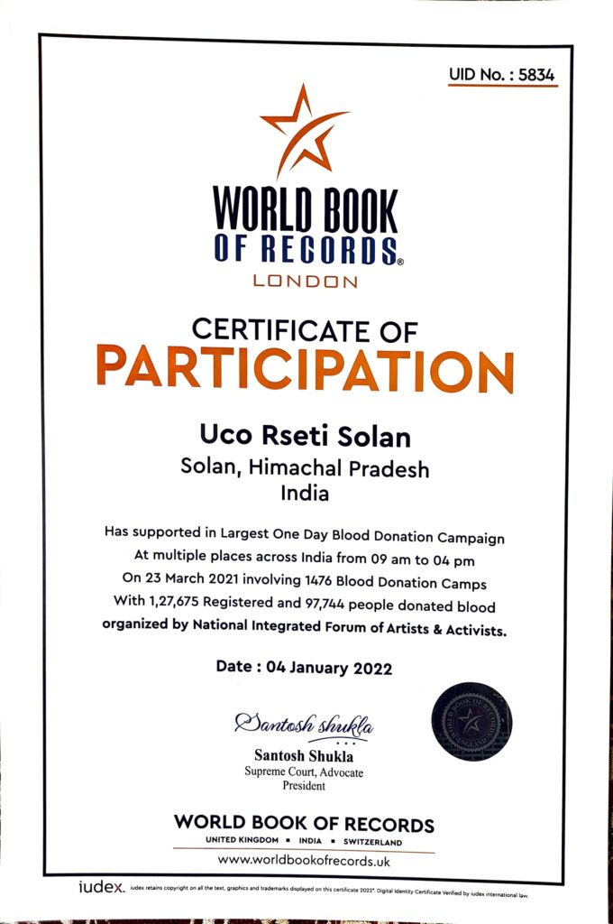 रोहित कश्यप ने कहा कि 23 मार्च 2021 शहीदी दिवस के उपलक्ष पर निफा संस्था के सहयोग से ‘संवेदना अभियान’ के तहत यूको आरसेटी सोलन द्वारा क्षेत्रीय अस्पताल सोलन में रक्तदान शिविर का आयोजन किया गया था। इस शिविर के दौरान सोलन के युवाओं की ओर से भी भरपूर सहयोग मिला।