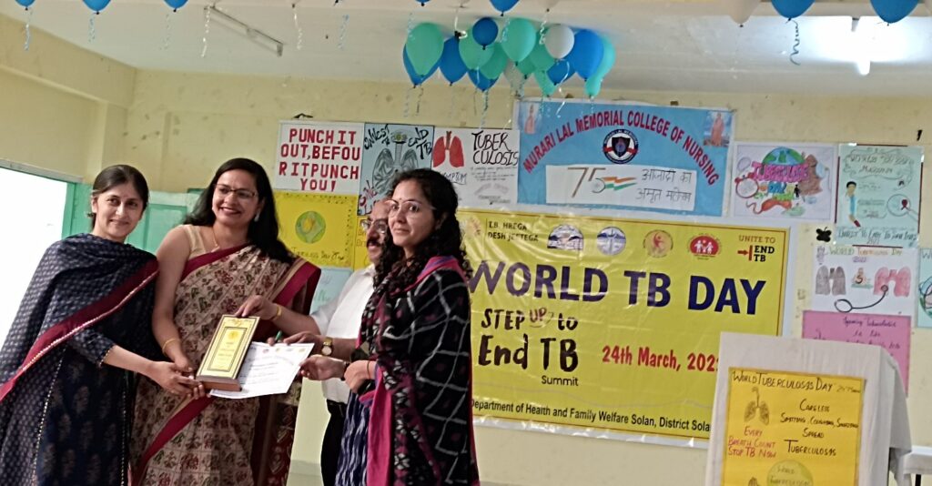 ब्यूरो, दैनिक हिमाचल न्यूज :- स्वास्थ्य एवं परिवार कल्याण विभाग सोलन के सौजन्य से टी.बी. दिवस का आयोजन मुरारी लाल मेमोरीयल नर्सिंग कॉलेज ओच्छघाट, सोलन में किया गया। कार्यक्रम की अध्यक्षता उपायुक्त सोलन कृतिका कुलहरी ने की।