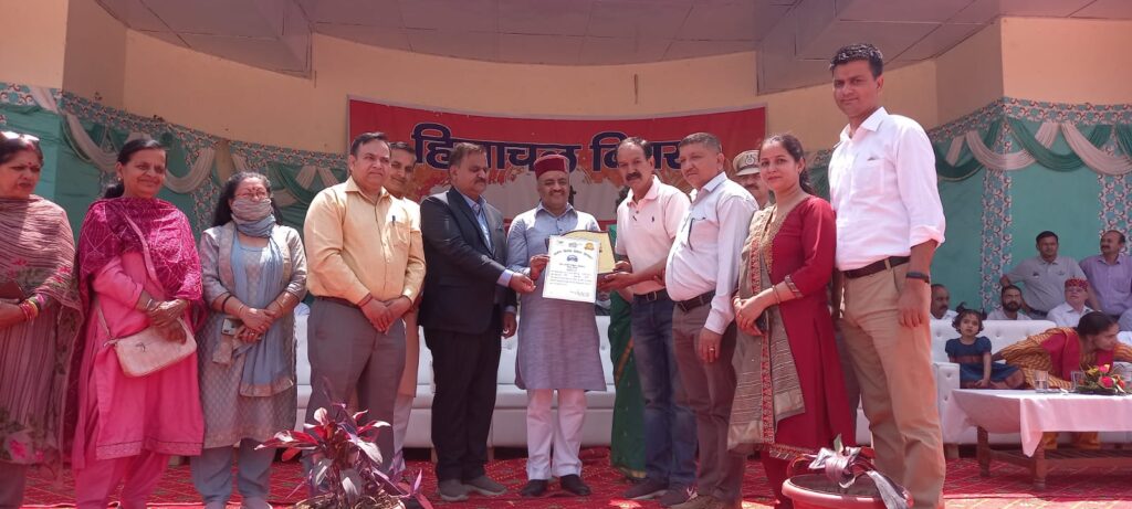 ब्यूरो, दैनिक हिमाचल न्यूज :- हिमाचल दिवस पर जिला स्तरीय कार्यक्रम के दौरान विकास खंड कुनिहार की ग्राम पंचायत हाटकोट को ग्रामीण विकास एवं पंचायती राज विभाग की विभिन्न योजनाओं के क्रियान्वयन में उत्कृष्ट सेवाओं हेतु प्रदत विशिष्ट सम्मान से नवाजा गया ।यह सम्मान सोलन में प्रदेश के सवास्थ्य मंत्री डॉ राजीव सहजल ने पंचायत के प्रधान जगदीश अत्रि व उप प्रधान रोहित जोशी वार्ड सदस्य रक्षा शर्मा व तेजेंद्र सैनी को सोलन में प्रदान किया ।