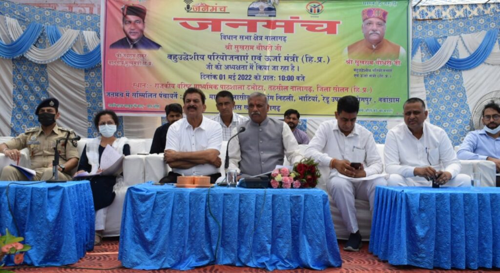 ब्यूरो, दैनिक हिमाचल न्यूज:- बहुउद्देशीय परियोजनाएं एवं ऊर्जा मंत्री सुखराम चैाधरी ने कहा कि लोकतान्त्रिक व्यवस्था का मुख्य उद्देश्य सरकार की योजनाओं व कार्यक्रमों के माध्यम से आमजन की सेवा करना है। उन्होंने कहा कि आमजन की सेवा के लिए सभी विभागीय अधिकारियों को सरकारी योजनाओं को जन-जन तक पहुंचाने के लिए त्वरित प्रयास करने चाहिए। सुखराम चैाधरी आज सोलन जिला के नालागढ़ विधानसभा क्षेत्र के दभोटा में आयोजित जनमंच की अध्यक्षता कर रहे थे।