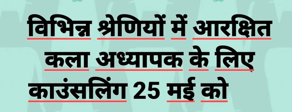 विभिन्न श्रेणियों में आरक्षित कला अध्यापक के लिए काउंसलिंग 25 मई को