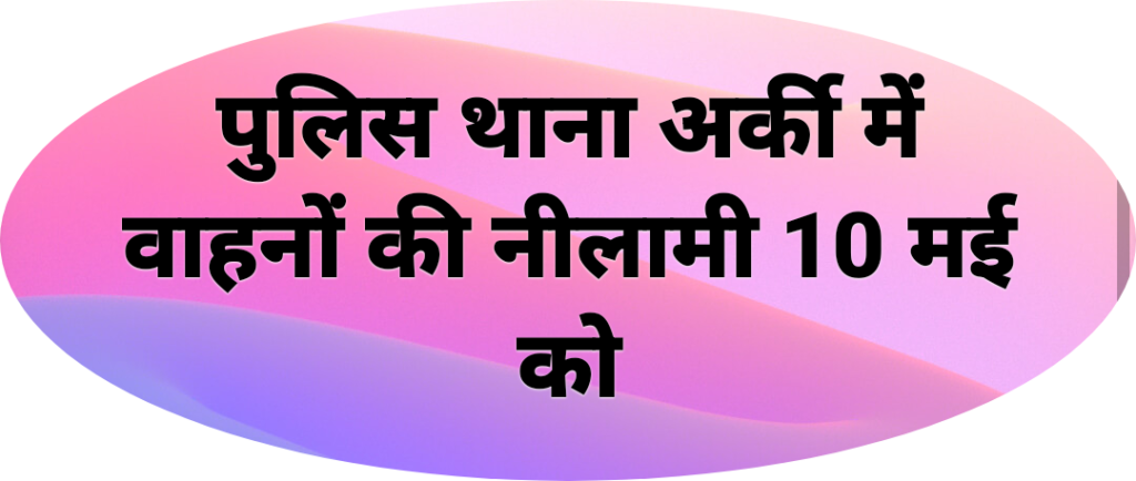 ब्यूरो, दैनिक हिमाचल न्यूज :- पुलिस थाना अर्की में 10 मई, 2022 को प्रातः 11 बजे दो हल्के मोटर वाहनों की नीलमी की जाएगी।