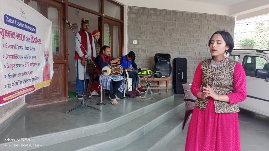 विकास की राह पर क्षितिज की ओर हिमाचल समूह गान के माध्यम से कलाकारों ने ग्रामीणों को किया जागरूक
