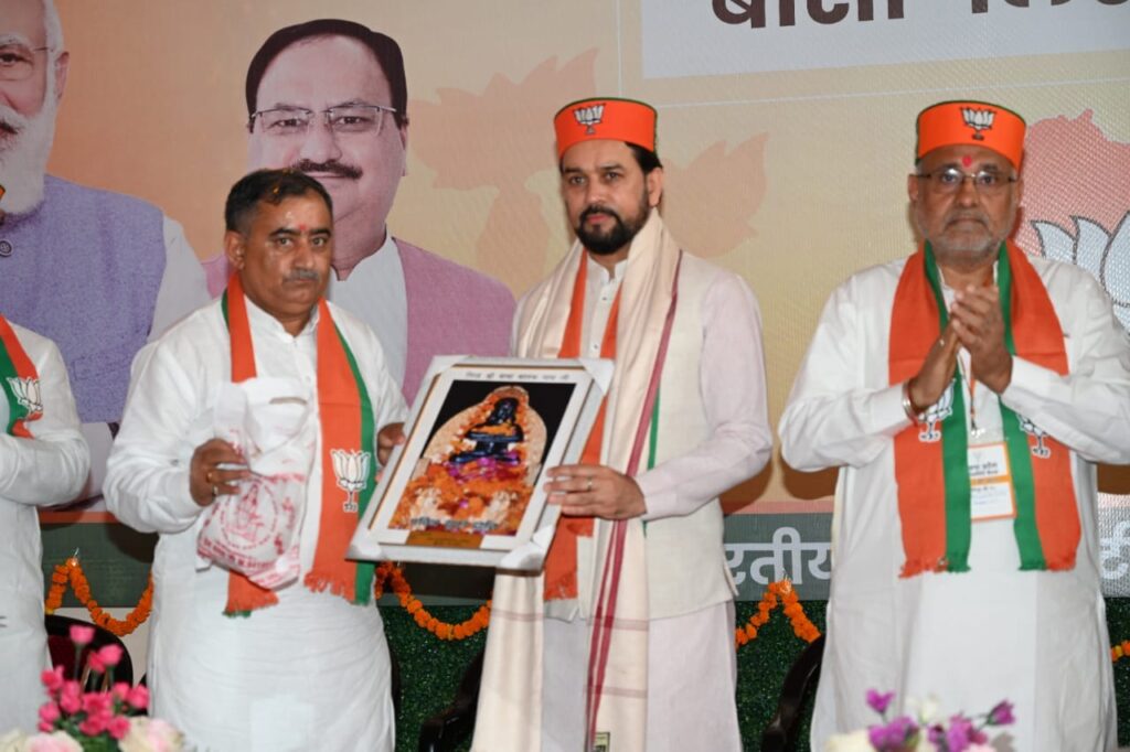 ब्यूरो,दैनिक हिमाचल न्यूज : हमीरपुर संसदीय क्षेत्र से सांसद व केंद्रीय सूचना प्रसारण एवं खेल व युवा कार्यक्रम मंत्री अनुराग सिंह ठाकुर ने हमीरपुर में भारतीय जनता पार्टी हिमाचल प्रदेश की प्रदेश कार्यसमिति बैठक में केंद्र व प्रदेश की डबल इंजन सरकार से हिमाचल में अभूतपूर्व विकास कार्यों को अमलीजामा पहनाए जाने व मोदी जी के नेतृत्व में देश के प्रगति पथ पर तीव्रता से आगे बढ़ने की बात कही है।