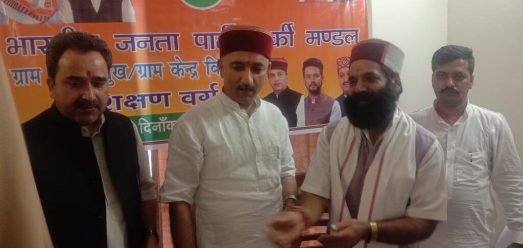ब्यूरो, दैनिक हिमाचल न्यूज – भाजपा अर्की मण्डल ग्राम केन्द्र प्रमुखों व विस्तारकों की एक दिवसीय प्रशिक्षण वर्ग लगाया गया । जिसमें शिशु धर्मा शिमला संसदीय क्षेत्र सह प्रभारी एवं ओएसडी, भाजपा प्रदेश उपाध्यक्ष रत्नसिंह पॉल,, नोबल नेगी व सुनील डोगरा विस्तारक विशेष रूप से उपस्थित रहे।