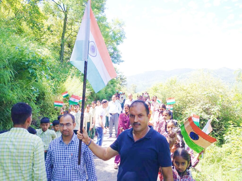 जिसमें विद्यालय के अध्यापकों व छात्रों ने तिरंगे के साथ देशभक्ति के गीत व नारे लगाते हुए पथ संचालन किया । इस उपलक्ष्य पर सभी बच्चों ने तिरंगे को हाथ में लेकर देशभक्ति के नारे लगाए ।